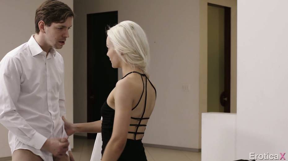 Petite blondie Elsa Jean swallows a dick and gets her muff nailed