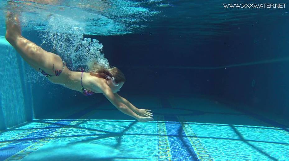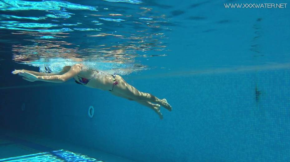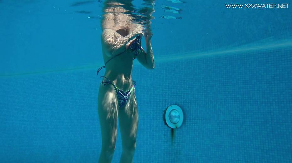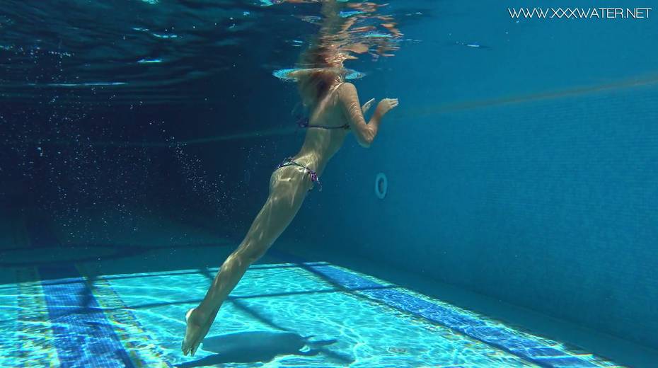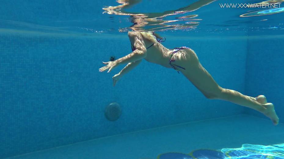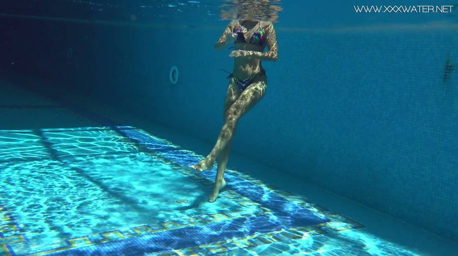Sexy girl Mary Kalisy shows underwater striptease and masturbates pussy