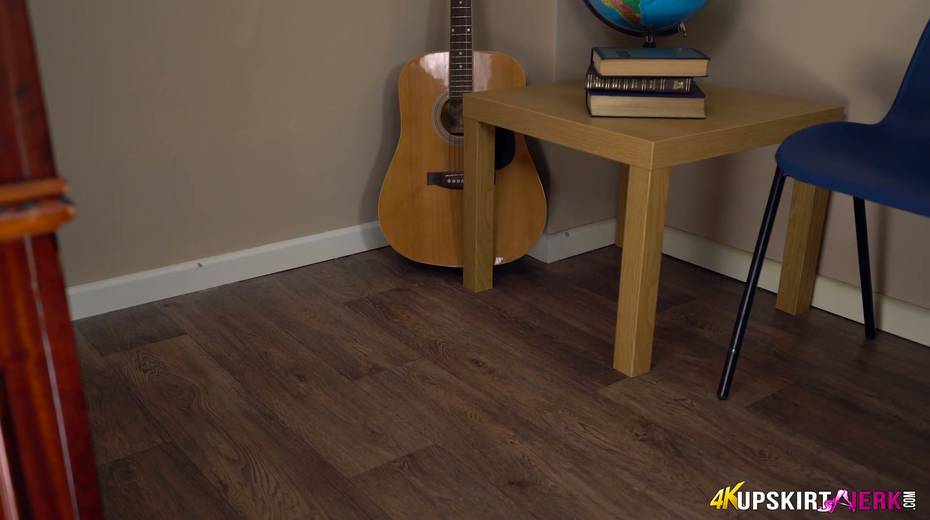 Whorish blond student in short kilt skirt Jessica shows off puffy snatch