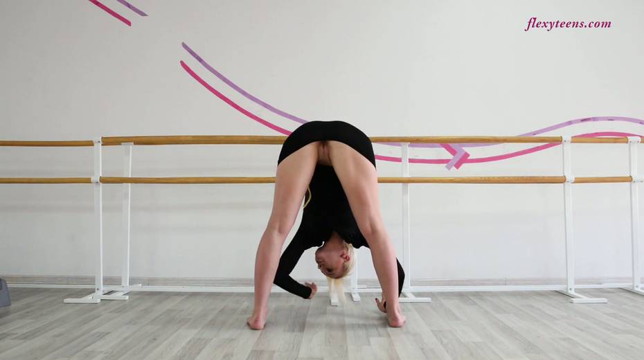 Flexible gymnast Anna Sigarga does the split and shows yummy pussy