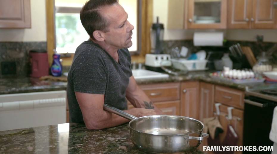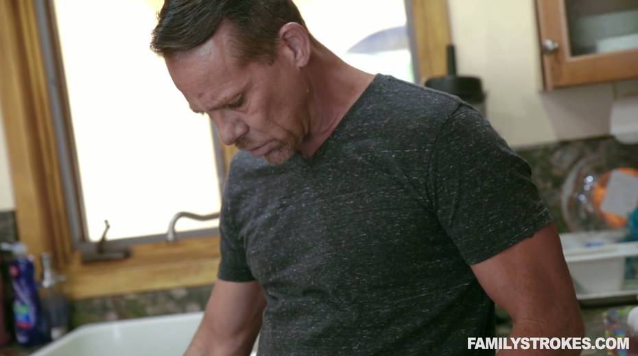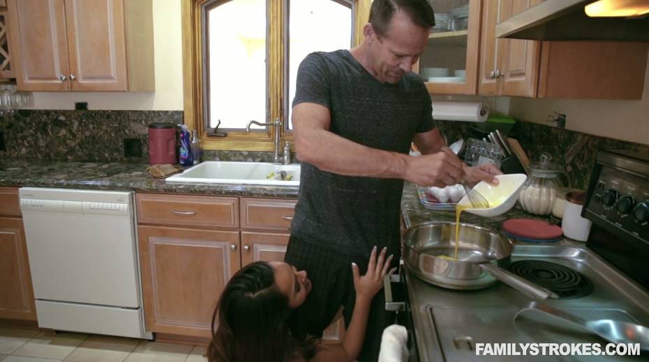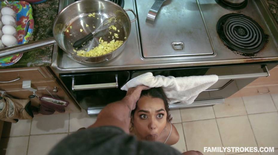 Cum-thirsty stepdaughter gives a blowjob to stepdad under the table