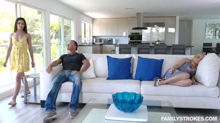 Lustful stepdaughter Gianna Gem gets intimate with stepdad in front of sleeping mom