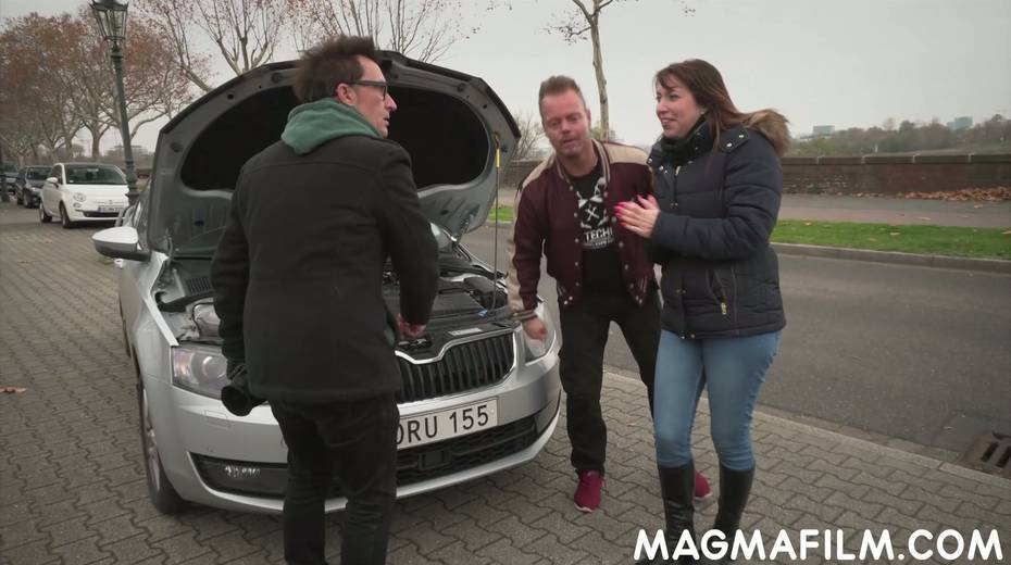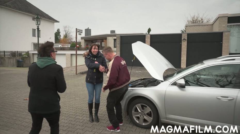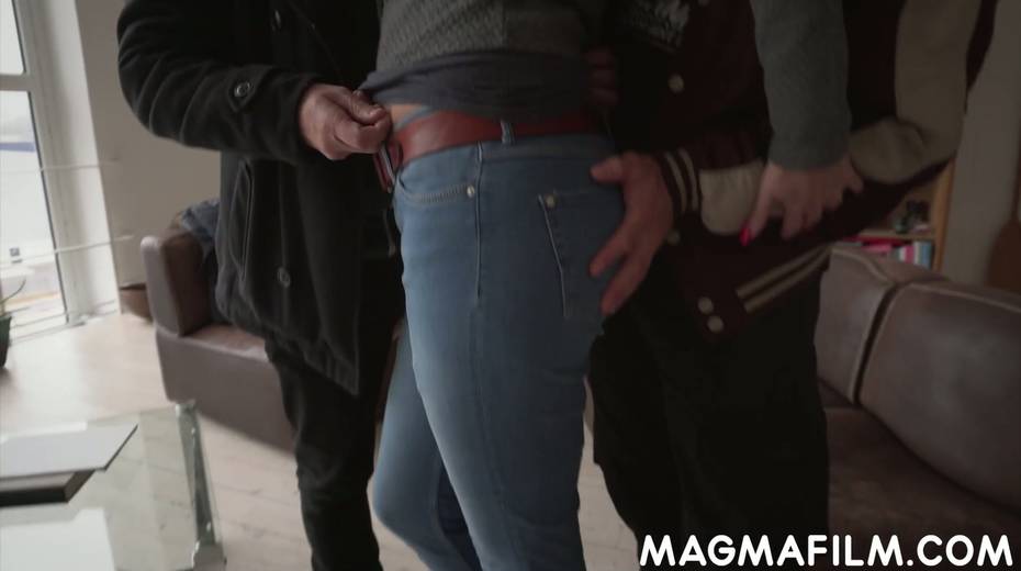 Two dudes fuck wet cunt of nasty milf Daphne and cum on her boobs