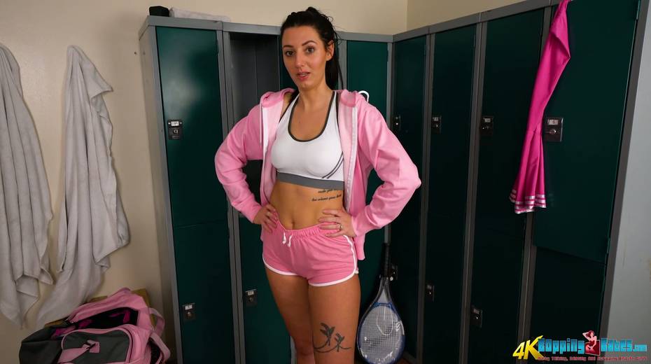 Lustful brunette with tatts Violet gets naked and shows off yummy slit