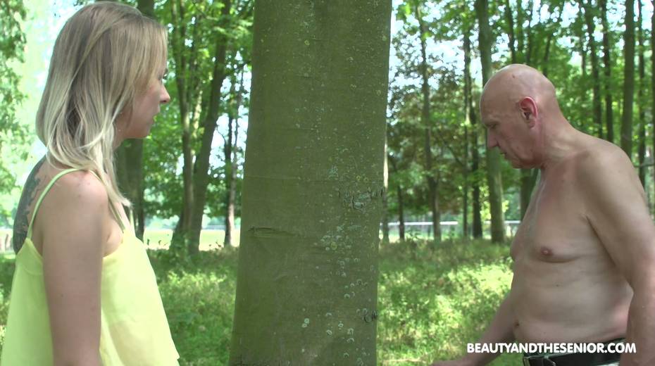 Old dude seduces lovely young blonde Lily Ray and bangs her in the park