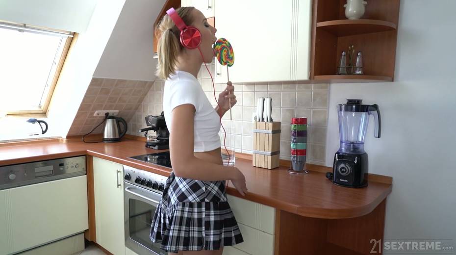 19 yo pig tailed stepdaughter Poppy Pleasure is fucked by old stepdad