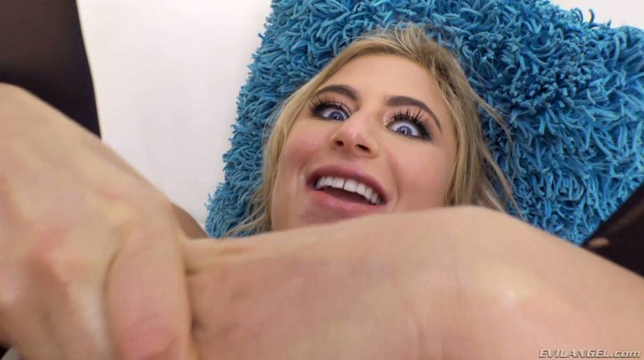 Naughty blond chick Lindsey Cruz is fucked anally and fed with a favorite cum dessert