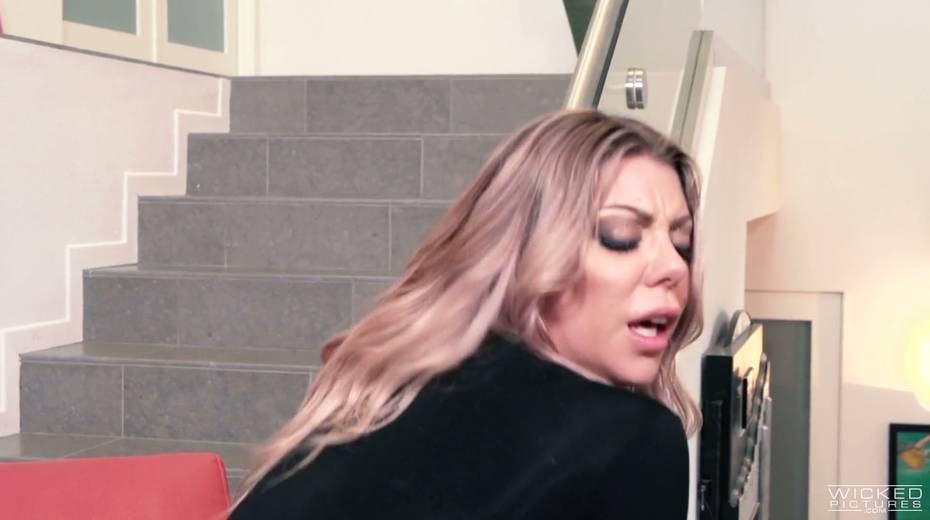Blonde with massive boobs Karma Rx gets a mouthful of sperm after pussy pounding