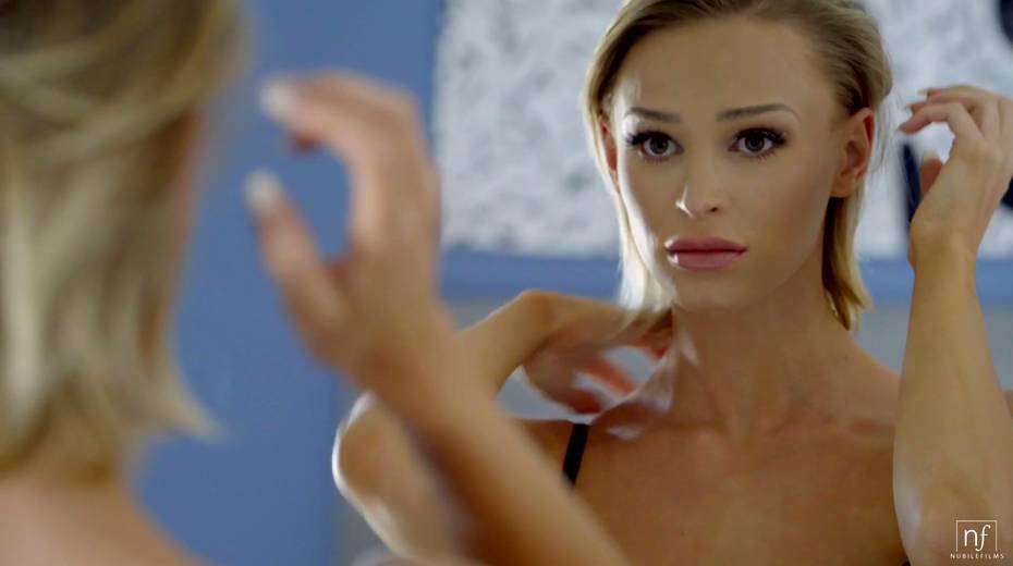 Skinny blonde with appetizing ass Emma Hix takes a hard cock in dripping pussy