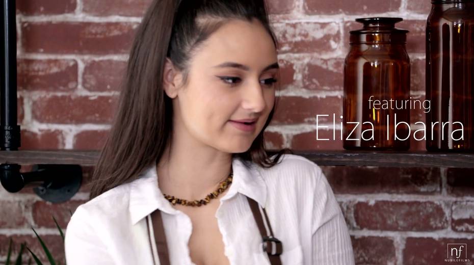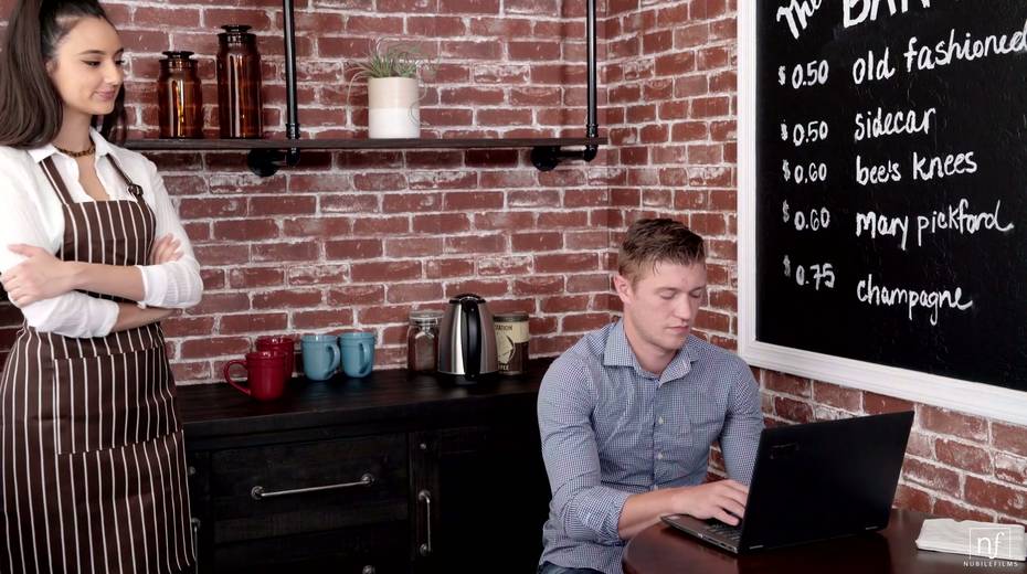 Cute young waitress Eliza Ibarra seduces handsome stranger