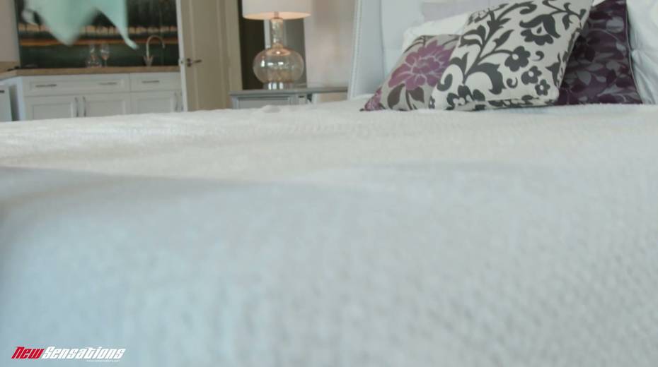 Tantalizing babe in sexy lace lingerie Honey Blossom gives a blowjob and gets her pussy slammed