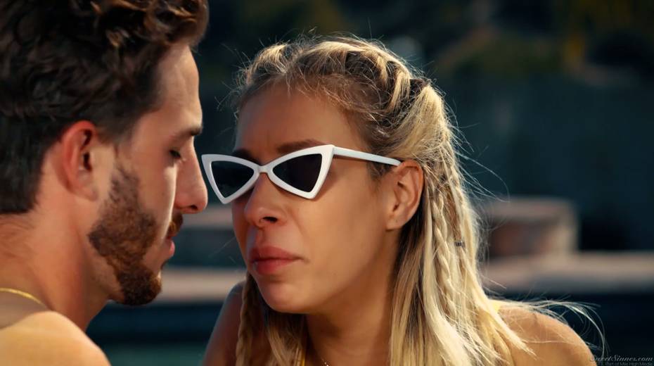 Hot blooded blond babe Carmen Caliente gets her pussy licked by the poolside