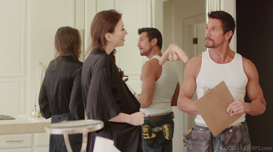 Desperate housewife Angelina Diamanti bangs handyman like a greedy for semen bitch
