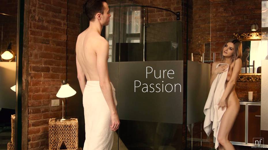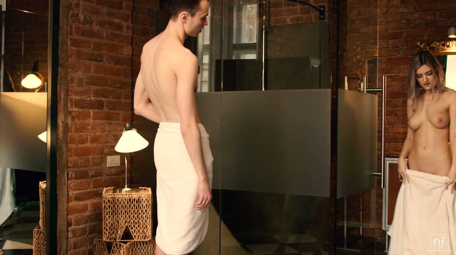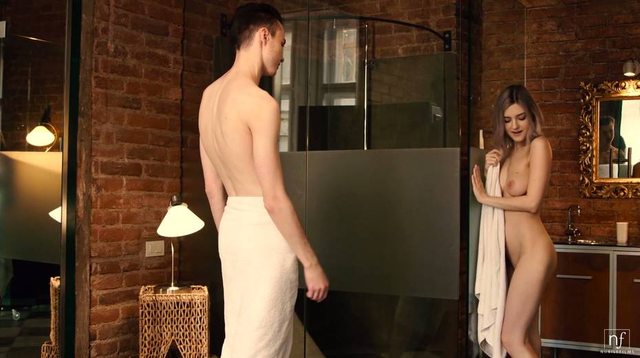 Busty petite girlfriend Eva Elfie gives a sensual blowjob and takes cumshots on big boobs