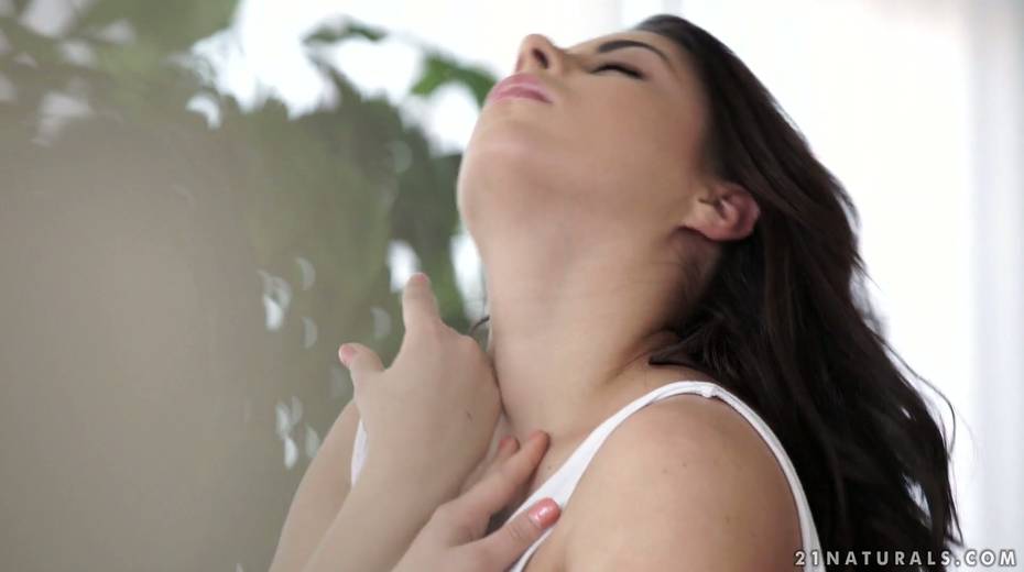 Sensual brunette Nikki Waine tries to satisfy herself with fingers