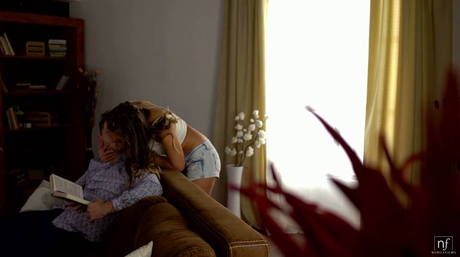 Man eating bitch Naomi Bennett worships stepbrother's hard cock and gets her pussy creampied