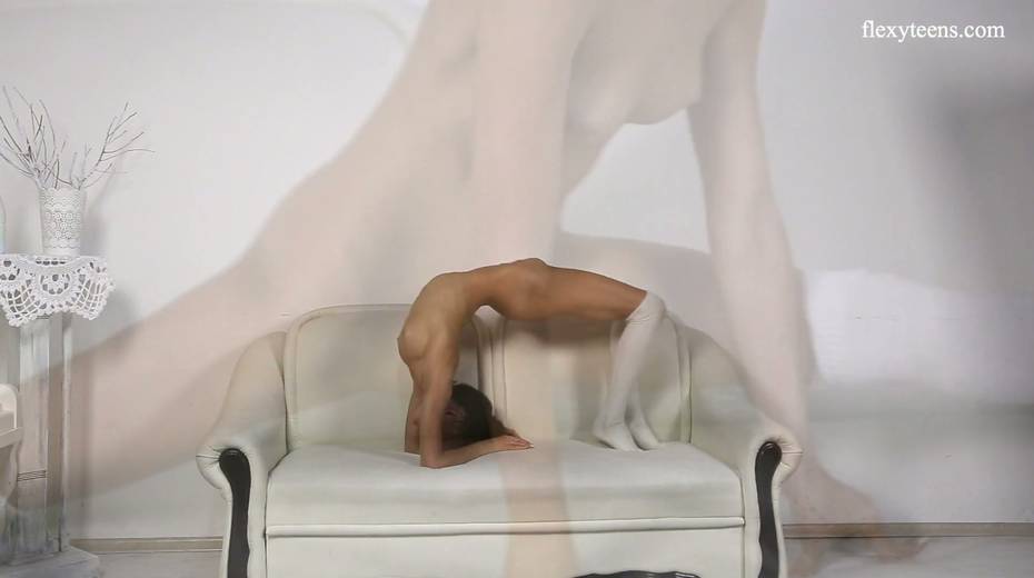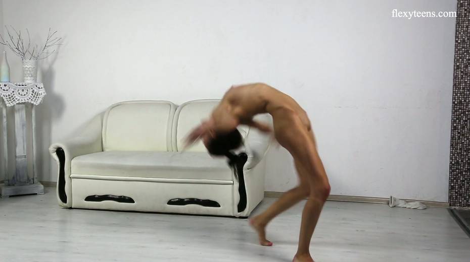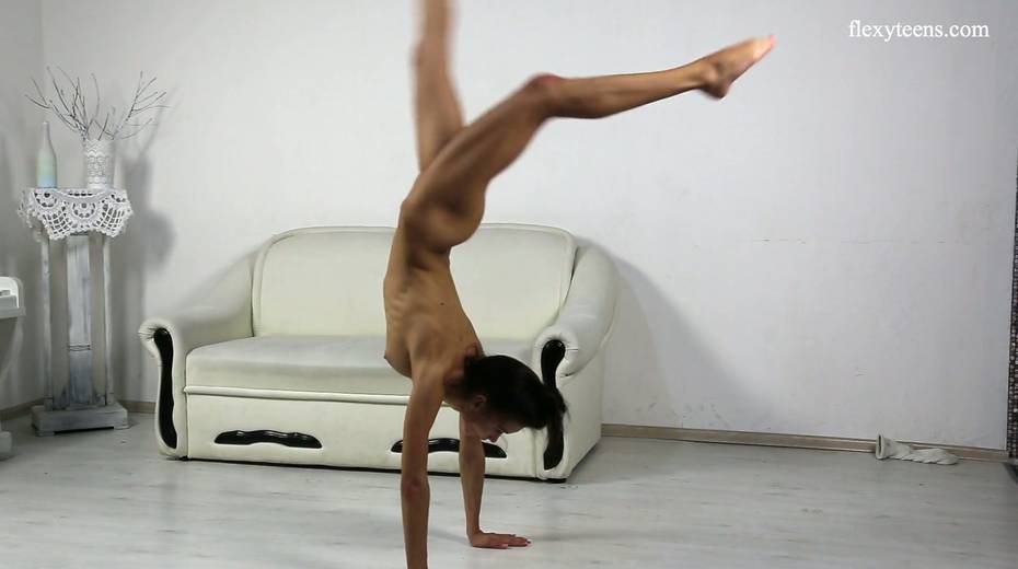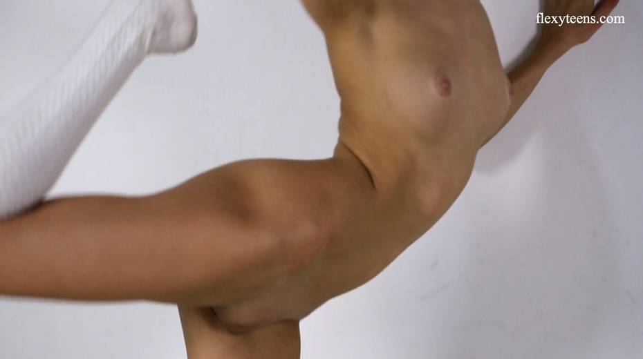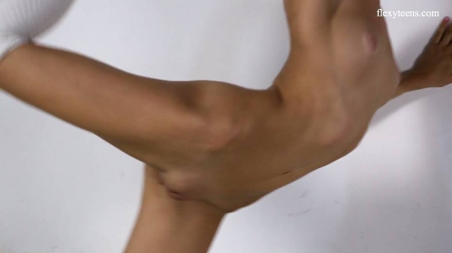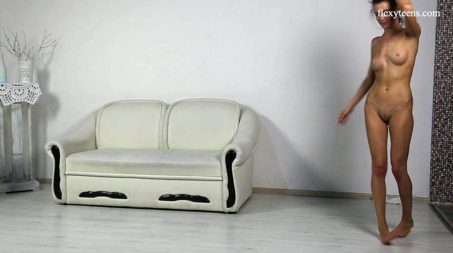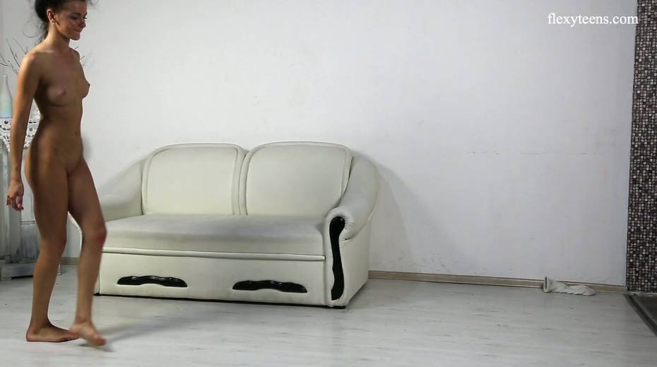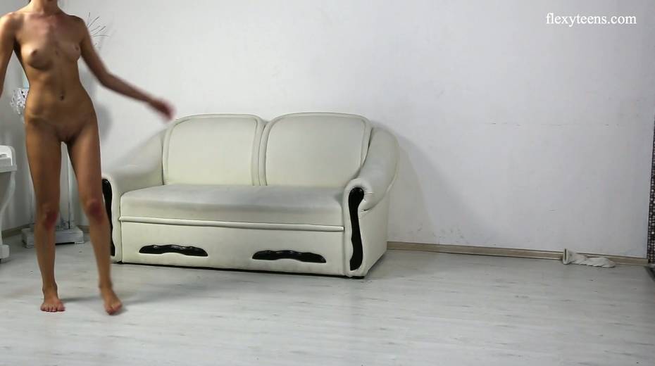 Skinny Russian ballerina Sanya Semashko gets naked and shows pussy in flexible positions