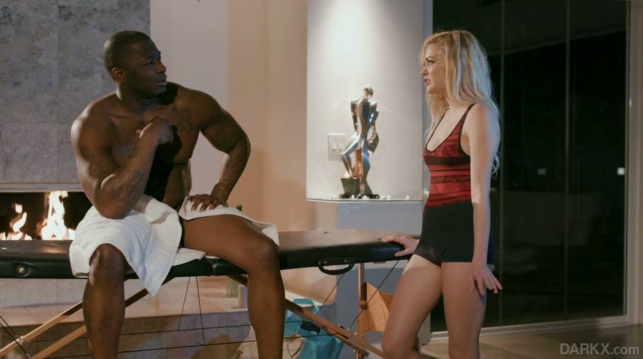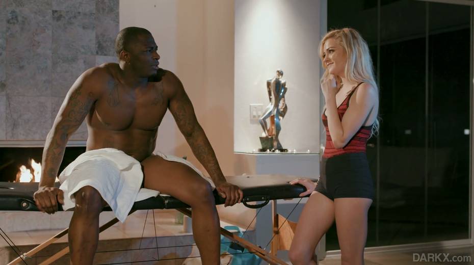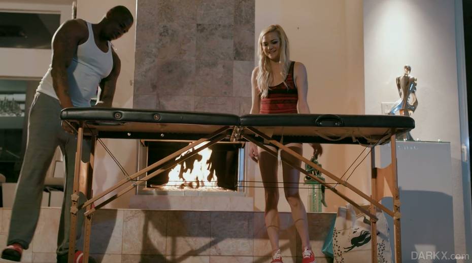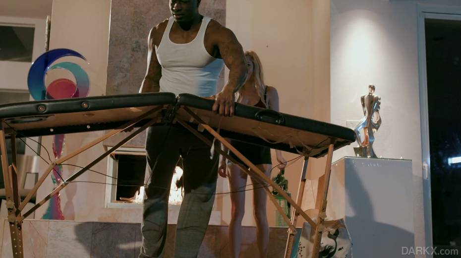 Petite blond masseur Chloe Foster goes black right on the massage table
